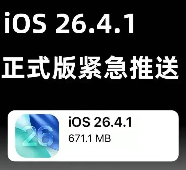 2026年4月9日,iOS 26.4.1开始推送,小版本,主做修复,关键在iCloud变更通知这块,在26.4上一些设备接收不到通知,CloudKit依赖的应用同步不上,苹果自带的密码App卡在多设备之间,第三方笔记也不跟,26.4.1把通道打通,通知进来,数据跟着走,iPhone和iPad之间对得上。