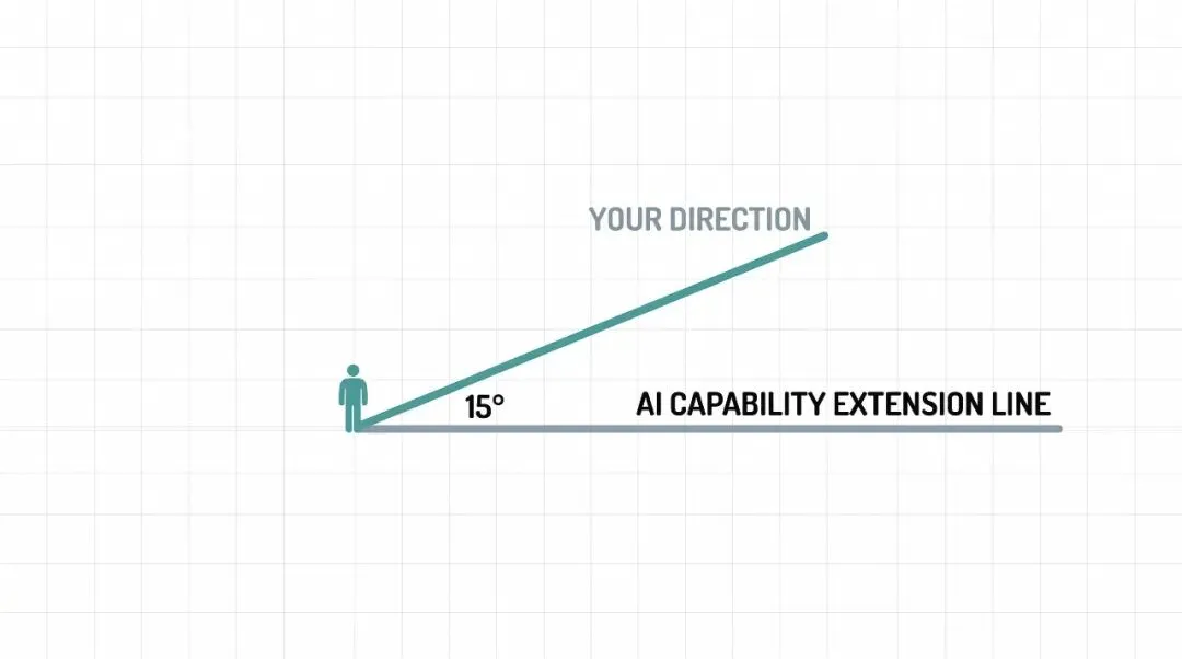 最好的姿态是保持一个15度的夹角——利用AI强大的执行力,同时深耕你自己独有的东西。行业经验、专业知识、审美品味、人生阅历,这些是目前AI没办法通过数据训练快速覆盖的领域。