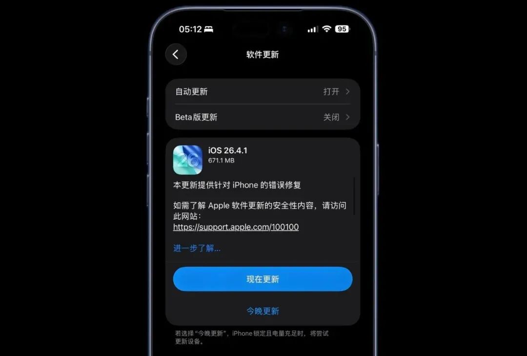 距离上一个版本才过去半个月,iOS 26.4.1 就突然推送了。