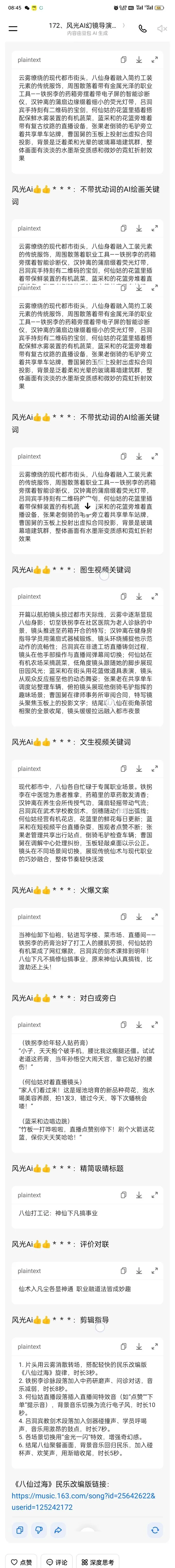 在本合集里面的精品智能体外,一大部分的智能体没机会展现。现在正有条不紊的更新到我的星球里(截止到2026年4月9日里面已经更新了109个自研智能体。其中有83个是公开的。)风光Ai智能体星球,除智能体外,也有几十个不需要投资的小项目,同时也在陆续更新几百组原创的AI绘画关键词,还可以互相交流多种AI相关的知识与工具等。 若有需要本智能体合集中祥细内容的,可单聊我。请诸位对我的智能体多多指点,不吝赐教,提出宝贵的键议和意见。我会在此表示感谢,并为您提供网盼资料,电子名片,社博卡及千粉计划群中推名片机会等福丽。👏👏👏。也可把你的想法打到评论区,我们共同去一探究竟。后期条件成熟之后,星球将会开启分享有赏模式。感谢小伙伴们的认可与付费。我会持续往里面追加优质的原创智能体。🤝🤝🤝↓↓↓ 阅读过我文章的人会了解我是较看重智能体的趣味性和实用性的。今天安排的又是款非常棒的智能体。👏👏👏有请今天嘉宾。↓↓↓只要把想法给这个智能体,他就快速按照设定的要求,智能想并生成视频方案:包括方案名称,带与不带扰动词的AI绘画关键词各一组,图生视频关键词,文生视频关键词,火爆文案、对白或旁白、顺口溜、吸睛标题等配套项目。同时还给出了剪辑指导与配匹配音乐链接。下面给大家展示智能体的生成效果 ↓↓↓ 今天这个智能体真是太好了,小白也可以轻松为的奇葩想法打造出相关视频。由于这个智能体将会设置为专门用于服务的私密智能体。感兴趣的可以自己截屏并识别出关键词,到即梦、千问等软件里面去生成视频,看看效果。 而我为大家推荐的易Ai绘画工具,它也非常有趣。功能上有文生图,还有图片立绘、局部重绘、抠图、漫改……甚至AI生视频,全能智能迅速实现。不用再找其他工具,靠它就可一站完成(小程序虽耗一丢丢点数,但通过分享、邀请好友和看广告等方式获取就可以了。非会员画上几次也相当于免费。而且当天用不完的积分,并不会像别的软件那样清零。👍👍👍)本小程序还同时支持生成MJ和SD的多个模型。(另有可画艺术字的专属爆款美感风格模型。) 且它还支持多通道绘画,能同时画至少两组图。它能生成多种风格的图片。再也不怕专门使用MJ要穿越,SD太烧钱等问题啦。西方不亮东方亮,总有一款在上岗。用它生成的图片非会员没有那个AI生成标识,大家还可以采用先截图然后提高清的方式来规避水印。它的网页版还有个生成百家姓白底黑字底图的功能。能够让你省去买花字体的钱👍👍。易Ai也有一个可以保护你作品的加水印防盗功能,以及很多的AI相关教程免费观看。许多直播间里花大几百买的课程还没有这里全面。↓↓↓我再跟大家提一句。😂😂😂易Aⅰ,有个易上手,让小白也有机会突破从0~1的变现功能:把它画的图设置成看广告模式发布到广场上去,就可以搞小钱钱。实现了平台、作者、爱好者三赢的局面。没有开会员的也有权限,零投资就可通过推广赚取10%的佣金。99%的工具是不允许像这样空手套白狼的。敬告:看广告领积分时,广告里面的内容大家请不要轻易相信!!! 看过本合集前面文章的细心朋友,也许会发觉我的金额和主页的图里的数据每次都在渐渐累积。希望今天这款智能体和易ai 一样,多多少少能给各位提供一点点帮助,祝开心快乐,幸福每一天。!👏👏👏 我还有更多有趣又实用的智能体。目前已经达200+,逐步会集合到我的风光Ai智能体星球中。想详细了解或者需要服务和相互学习的朋友,可以找到“我的地球我的家”↓↓↓可以分享给大家,90多种AI工具。 在我公众号↑↑↑底部菜单有相当丰富的“服务”套餐。大家可以点开获取多种相关资料,也可以去选择各种制作,在橱窗里还给大家准备了许多精选商品。有相同爱好的朋友可以一块拉拉手,一同进步,快乐学习。我公众号目前发的除了智能体文章之外,还有花鸟字动态视频和百家姓艺术字贴图。艺术字大家可随心打赏定制,毕竟都是有成本的。到橱窗下单的,可获取免费的制作机会。有小程序码的图片,可以自行去解锁把引号里的内容改成你需要的字,(我的原创AI绘画关键词虽然多为一个福字,你却可以把引号里的字改成多个字或者字母。)然后生成就行了。花鸟字动态视频可以为大家制作横版或竖版的名字,祝福语,招牌等专属视频。看中之前作品的姓氏头像可以去模板那里做同款。最近开始在公众号上面发布原创AI音乐了,非常好听的哟。有想定制专属音乐的,也可以寻我。近又发表了一些智能体生成的AI风光视频,广告小视频,还有专门展示智能体生成效果的视视频,都做成了新的合集。 视频号上面发的是拟人化萌犬AI视频。也将增加更多AI音乐。下面和大家分享我近期一些视频号的作品,请大家用你发财的金手帮忙点点赞。我视频号中的小视频将长期更新模仿西游记的《嘻游记》。用到的是我另一个创意故事智能体。↓↓↓ 储位还想用啥智能体吗?打在评论区,我们可以一同来探讨。对Ai音乐,视频,头像,艺术字,语音及其周边工具资料感兴趣的朋友们也可以找我互相切磋呀! 想深耕Ai技术的以下推荐比较良心的笔记,物美价廉,相见恨晚。全都覆盖了AI上80%的知识。当然如果不需要的话可以忽略。这些艺术码也是AI生成的。👇👇👇 想免费交流的可以看看下面,我有个风光Ai千粉资源