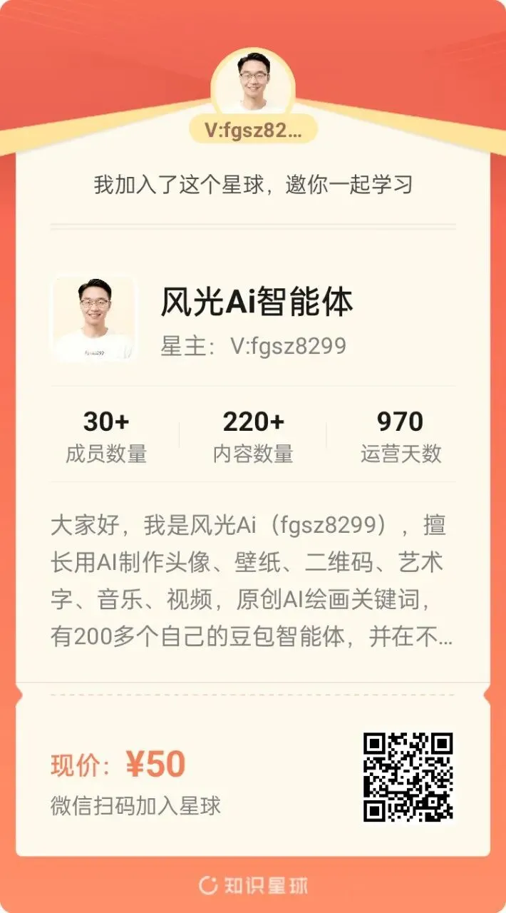 视觉魔法,风光Ai幻境导演(优化版),将抽象灵感转化为具象动态序列,惊艳超乎想象. 诸位网友们好!我是风光Ai(fgsz8299),昵称是因怎上Flow photo(戏称小海豚,优惠码8299。)后,做风景运镜时的主账号升级而来。(彼时几个账号分别为风景使者,美景使者,风光使者。)😂😂我是位由AI发烧友升级的博主,接触AI已有几年了。喜欢并擅长制作AI绘画及后续的AI艺术字,AI头像,AI艺术二维码,AI音乐,AI语音,AI修图,AI视频,AI音效,AI贴纸……,对多种手机上的AI工具使用得心应手,作品创作独具匠心👏👏👏本公众号精彩内容合集与精华资源荟萃。