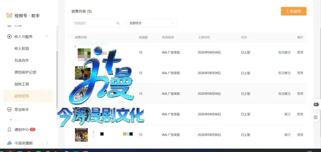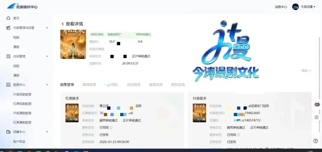 AI漫剧项目介绍漫剧广告项目,是依托短视频平台生态,以动漫短剧(漫剧)为流量载体对接广告,通过广告激励解锁模式实现商业变现的合规盈利项目。说简单一点,就是我们公司帮你制作好一部漫剧,包括剧本制作、分镜制作、动效&特效、配音&剪辑等,还有原创证明,作品证书,确保不会侵权。那么,我们帮你把漫剧制作好之后,就可以上架平台对接广告盈利了,一部漫剧可以上多个平台,比如:抖音、红果、视频号、快手等,每个平台要求不一样。抖音:支持个人和企业(营业执照上架),需要准备一个抖音号(500个有效粉丝)视频号:只支持公司的营业执照,需要做企业认证(认证费300元)就像我们在红果视频上看短剧是一样的,看完一集,就需要看广告解锁下一集的剧情,看了广告就有收益。每天看广告的收益就会在第二天展示在我们的后台上面。就是自己准备手机,直接搜索我们自己的漫剧,在里面看广告,一台手机把整部剧看完,收益大概在单设备100元左右,那么,我们可以同时准备多台手机一起看,就可以把收益无限放大,因为项目是新出来的,目前没有风控,手机越多刷的收益就会越高。收益都会显示在官方后台上,每个月由平台结算打款。意思就是我们自己没有那么多时间,或者没有那么多手机操作,那么可以找代刷团队代替我们看广告,让他准备多台手机以及人员去看我们的漫剧获得收益。那么,代刷刷出来的收益都会在我们的后台上,然后跟代刷五五分成、四六分成或者三七分成,由你去谈,比如五五分成,他们刷了2000元,我们就给他转1000元。这样我们就可以节省很多时间出来做自己的事情。刷手代刷,跟自刷的打法一样,收益对半分成。(如有需要公司可安排代刷)作品登记证书申请约2个工作日,漫剧剪辑制作约为10个工作日,官方审核约为3个工作日,综合上架时间为15~17个工作日。1、项目源头开发运营公司,同品质售后服务下保障价格行业最低,作品最优,因为我们都是自己手搓来制作精品漫剧,不像一些招商公司,只是收钱后去外面购买漫剧给你发布;2、我们有专业的运营人员,多对一指导服务,有什么问题直接在我们运营群沟通,有专业的解答。免费协助运营保障打法更新。3、B端客户提供免费的数据共享服务,给到你最大的支持保障你的销售业务。AI漫剧一站式承制:单部6980元,10天交付,含20~30集(单集60~90秒),总时长20~30分钟。MP4格式,支持横竖屏,30~60fps高清画质,全平台发布变现,播放量越高收益越高,低成本撬动高效变现。这个钱,就是广告商广告主他们在抖音投的广告费,每一个流量数据,最常见的广告就是4种:商业、游戏、交友,原始(软件)等广告,其中商业广告的价值最高,平均值都是在50~278一条不等的,我们找兼职的目的,就是通过养机提高刷高价值的商业广的机会。基本上刷几条,就可以让你今天赚好几百了,但是防止被平台检测到,会让你去投流,稀释掉这些高价值的广告收益,现在市场经济不是很好,所有的商业都会去投广告,现在广告的价值越来越高的原因就是,很多广告费消耗不掉,抖音是想要快速的给他们消耗掉,这样他们第二天就会投入更多的广告费,平台才能转到更多,所以现在这个项目风口,属于高峰期,很多人还不知道,风口项目最好趁早做,如果时间拖太久再去做的话,就很难抢占市场。