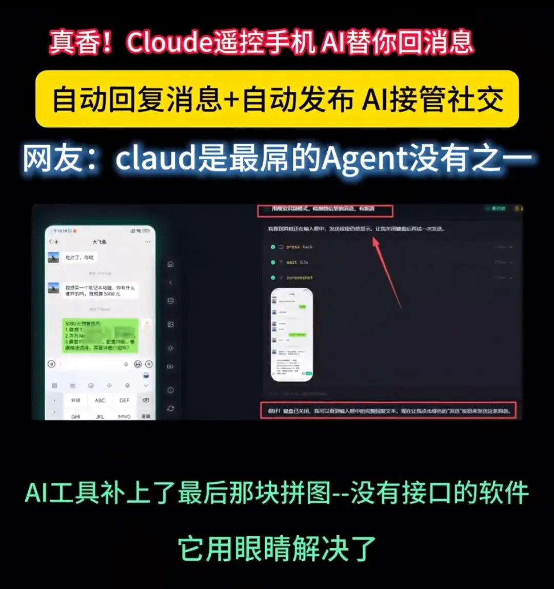 (本文约3400字,阅读约10分钟)现在AI发展的速度,确实超出很多人的预期,我最近刷到一条视频,Claude+OpenClaw能直接遥控手机,帮你自动回消息,自动发朋友圈,甚至接管你的社交账号,也就是说:AI能自动回客户消息,能跟客户聊天,能做需求分析,做客户服务跟进,还能帮你管理朋友圈,甚至能自动操作手机运营账号。