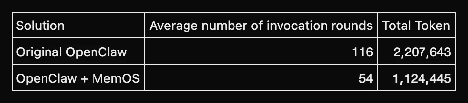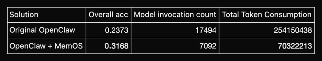 2. 模型调用频率下降 59.5%——龙虾不用反复试错、反复确认了,一次就能找到对的记忆