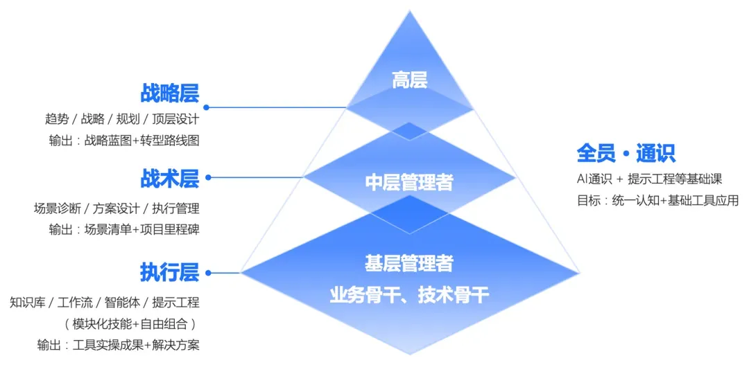 课程不从工具功能出发,而从企业真实业务场景切入——帮助员工把AI用在工作里,帮助管理者把AI融进流程里。