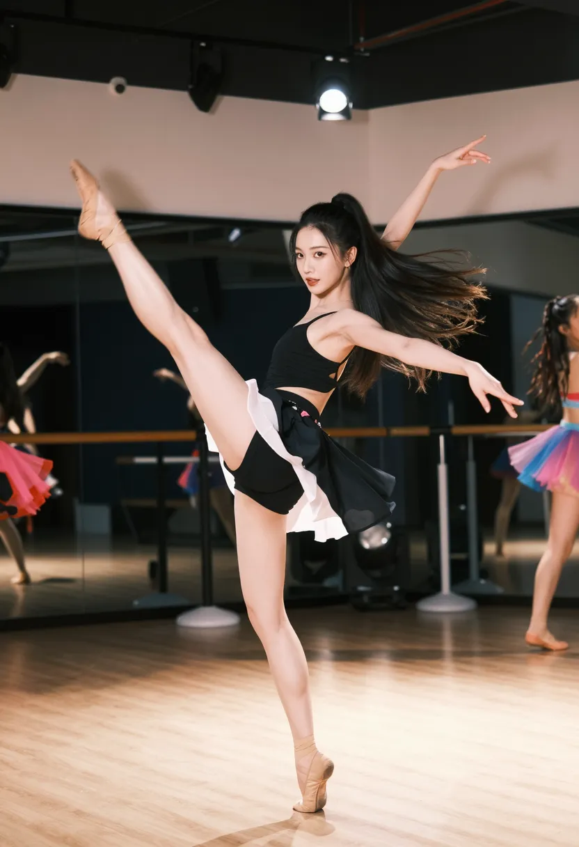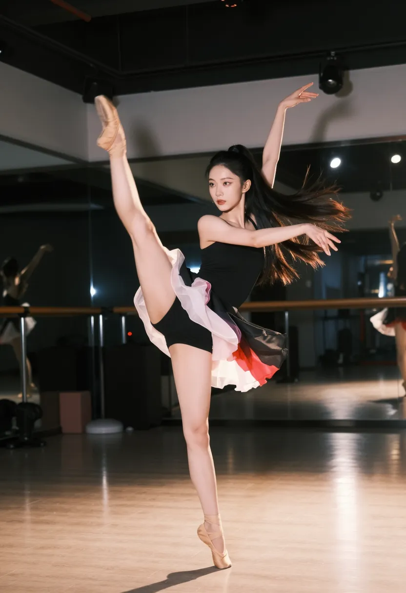 这个场景展现了8K超高清,极致细节,杰作,最佳画质,动作摄影,舞蹈室艺术风格,亚洲女性在舞蹈室中练习,穿着优雅黑色...画面构图精妙,光影运用恰到好处,充分展现了主角的魅力与气质。无论是服装细节还是环境氛围,都经过了精心的设计与布置。