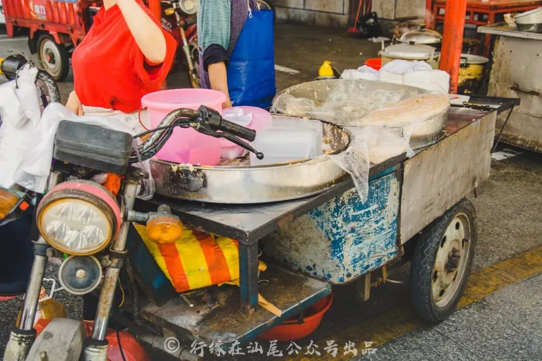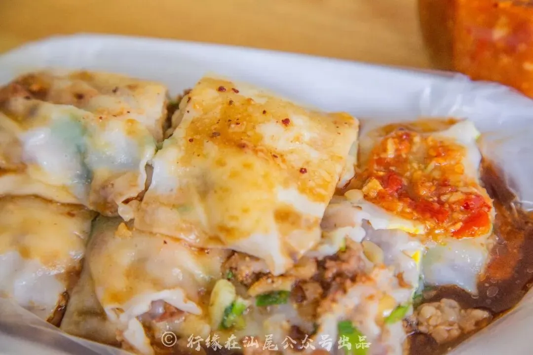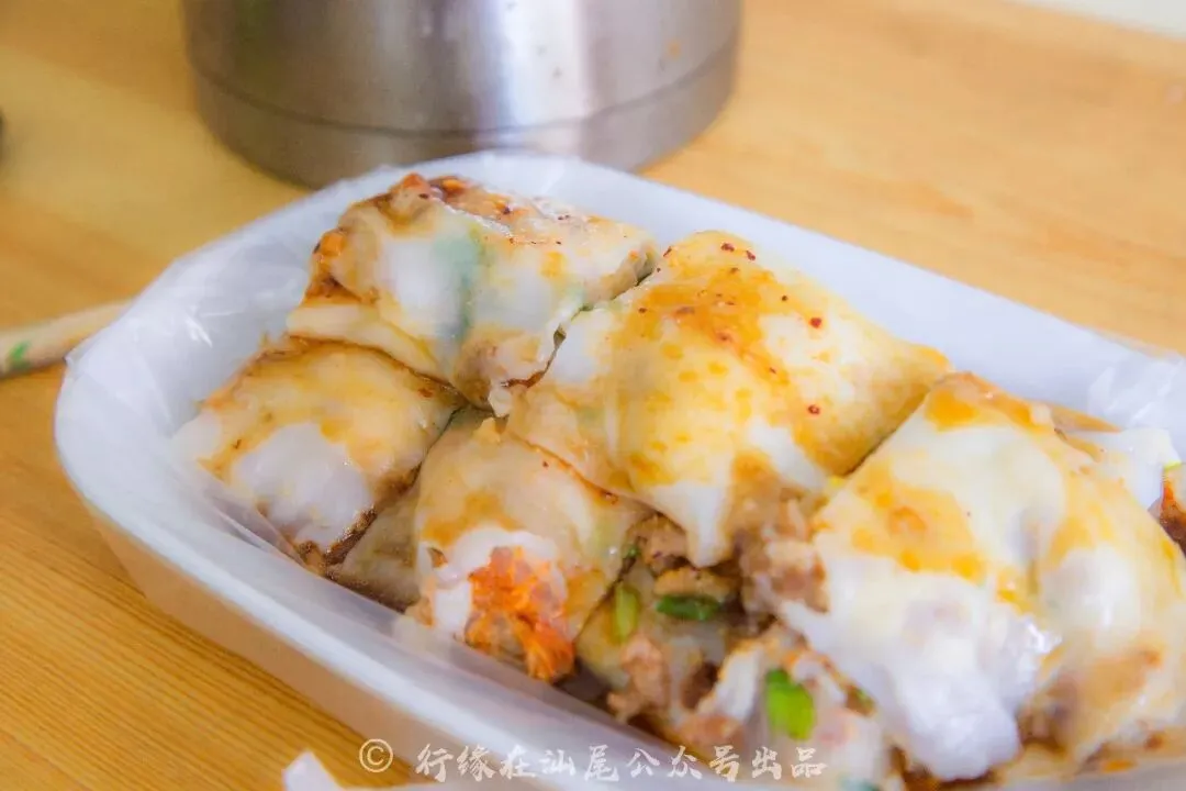 带着一种广式肠粉的滑感,又有一种潮式肠粉的酱料加分,再加上汕尾人独特的做法,这就是这道美食的特色,也是汕尾这座城市在美食上面多元化的表现。