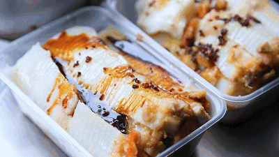 一盒十元均一,在大马路这边贩卖快有40年的历史,每到中午时分,小摊总会被围得里三层外三层,12点半后几乎买不到。