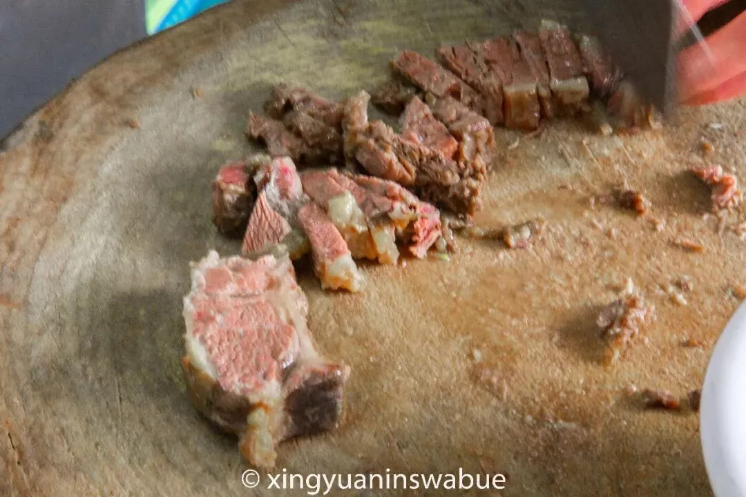 对比在广州吃的15元一碗的牛肉面里只有三片薄如蝉翼的牛肉片来说,可谓是很好了。