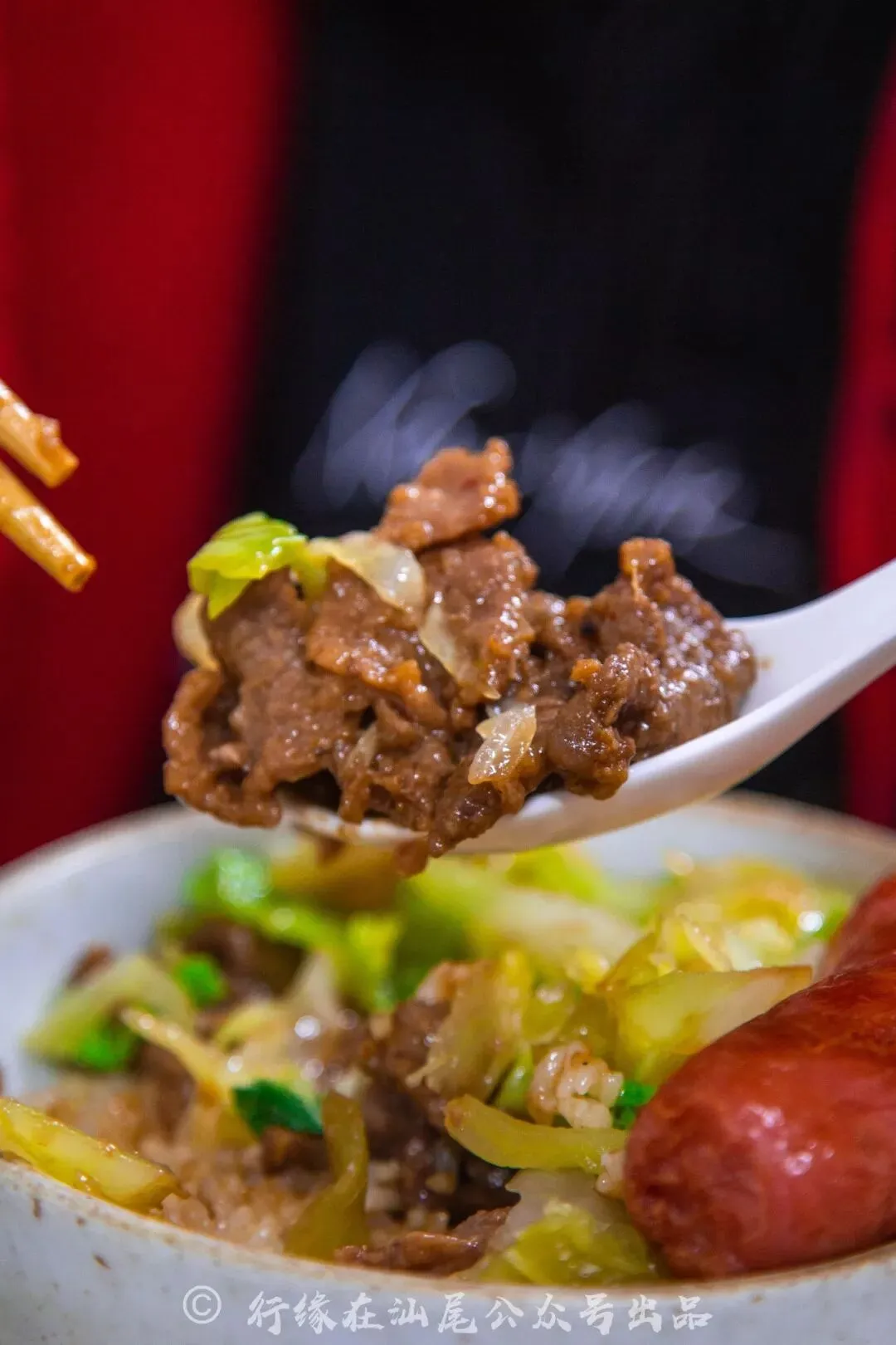 蒸饭,可以说是汕尾版的“快餐”了,牛肉蒸饭、冬菇鸡、牛肉排骨...众多款式的蒸饭里,推荐最爱的是牛肉蒸饭。