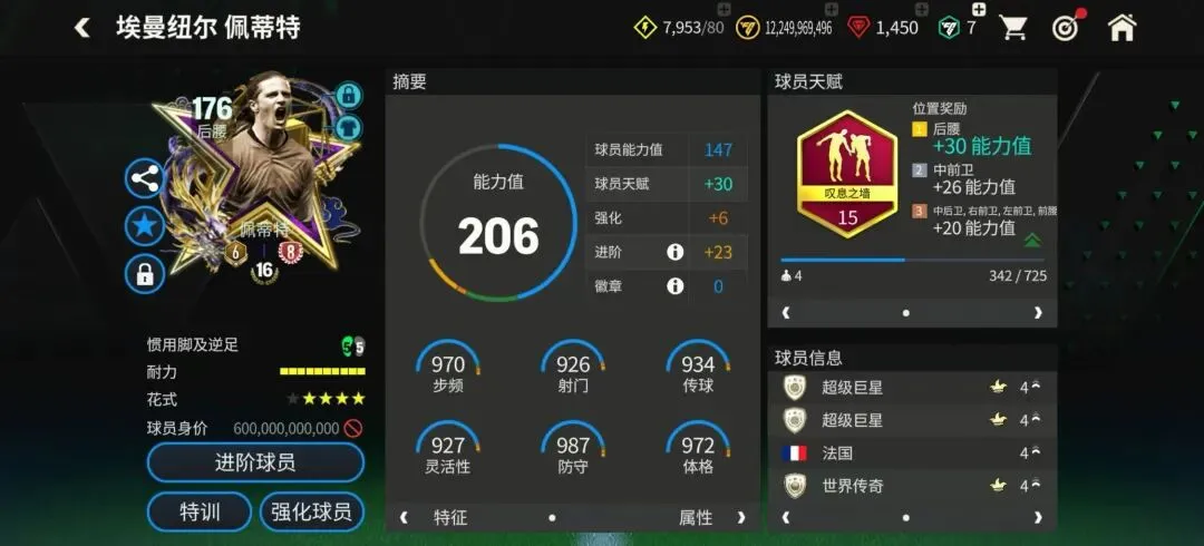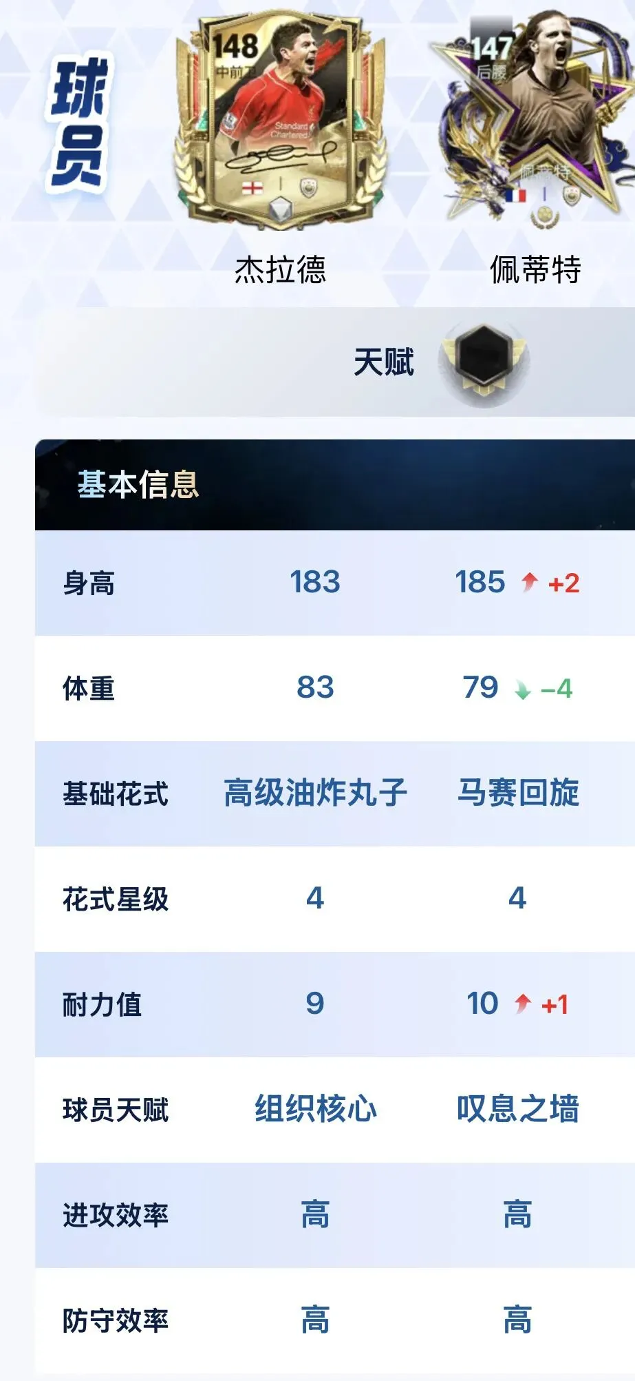 可以看到,杰拉德和佩蒂特都是双高效率,但佩蒂特的跑位和杰拉德完全不同,一个是全场覆盖面积出名的球员,一个是隐身问题一直存在的中场球员,为了更具实际,我也测了这两张卡