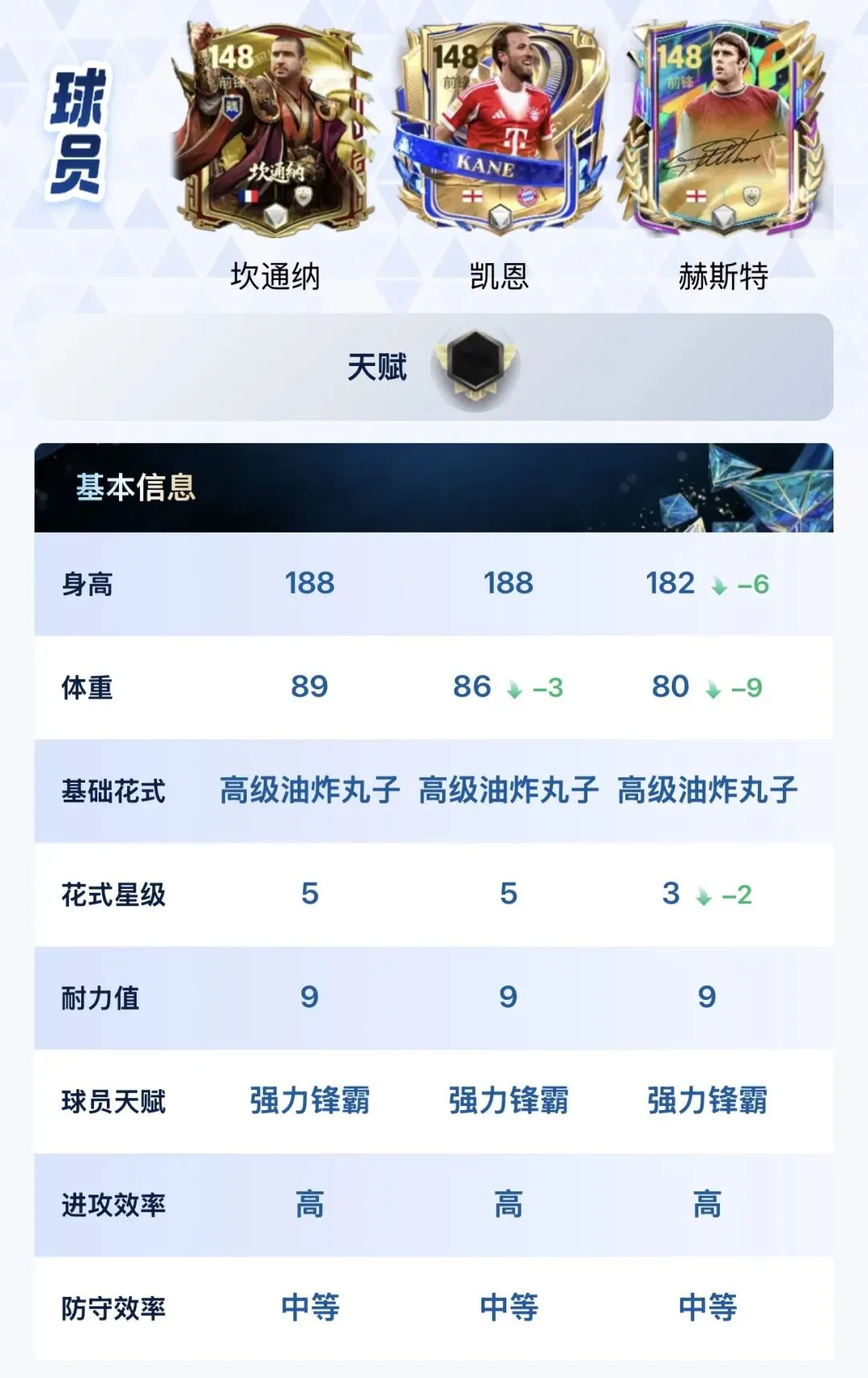 他们分别是147中前卫防守第一的三国赤壁维埃拉,防守数据第八的三国古利特,148防守数据第4的费莱尼,三名球员防守数据也均高于对应能力值均值