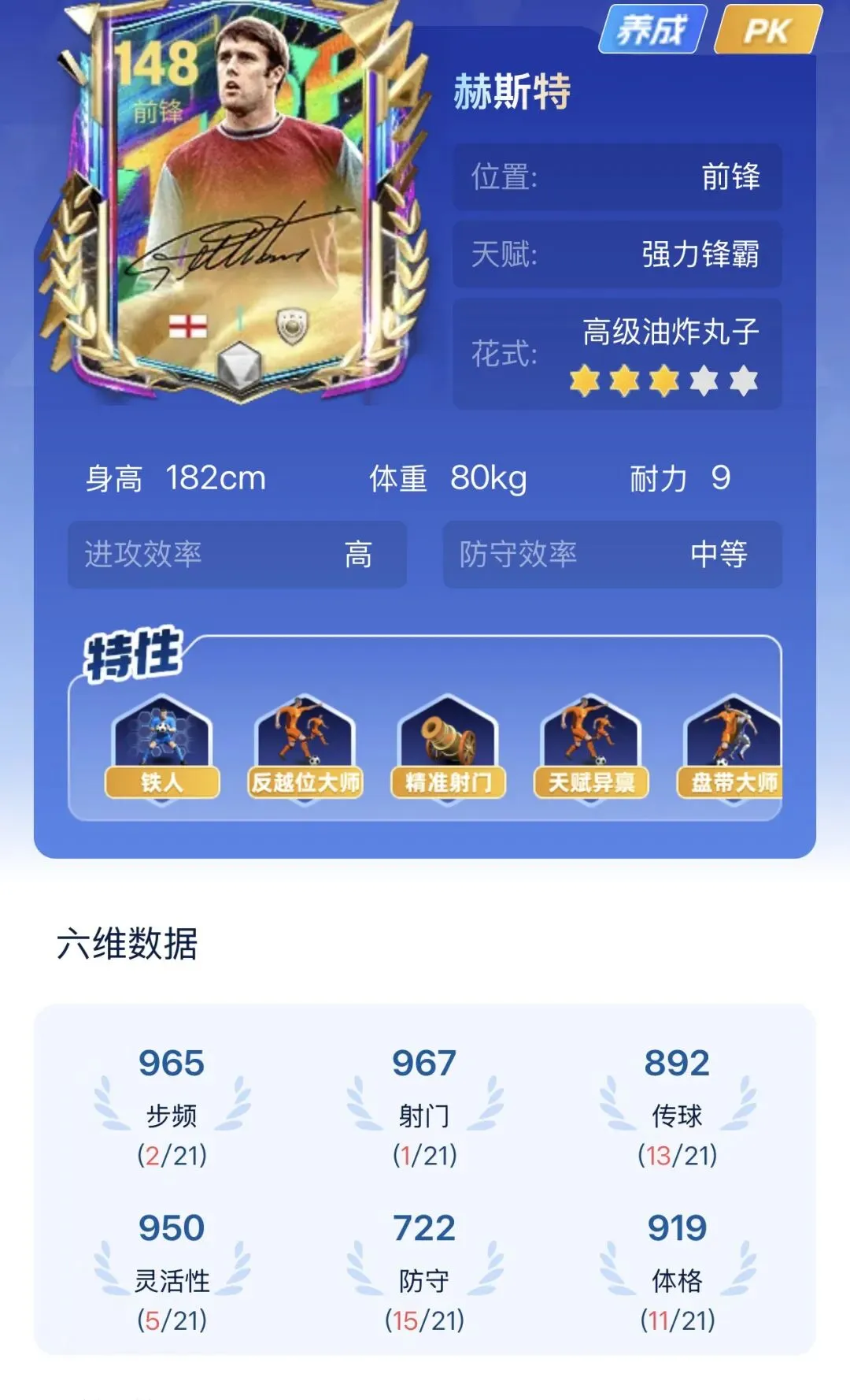 回到148最佳搭档赫斯特,接下来我们一起看看赫斯特的数据面板