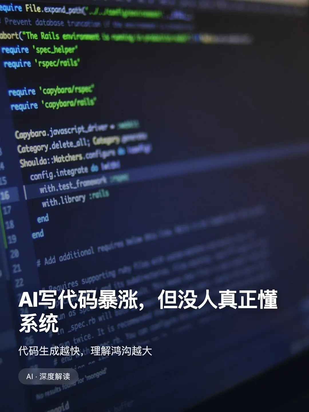 开发者如今借助 AI 工具发布的代码量是过去的十倍。但我们理解这些代码实际在做什么的能力几乎没有提升。于是,我花了几周时间深入研究这一现象。