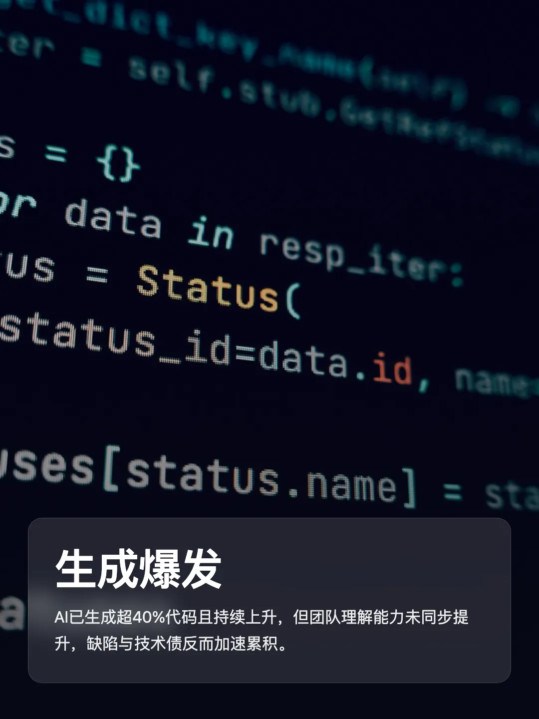 过去,开发工具关注的是速度:写得快、交付多。现在,真正的挑战是理解能力,而不是生成能力。只有建立系统的世界模型,才能让代码不仅能运行,还能被团队理解、预测和控制。