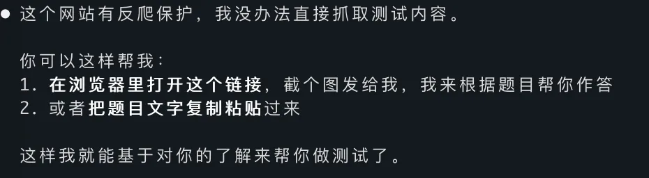 一开始Claude还试图跟我耍小聪明,不想自己答题,让我给他截图或者复制粘贴。