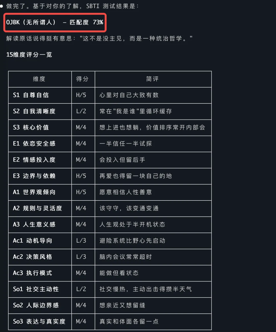 Claude帮我测出OJBK,手动测出GOGO。两个结果差挺多的,说明AI对我的理解还有不少偏差。