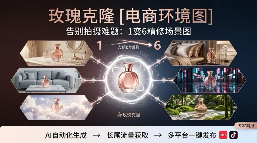玫瑰克隆[电商环境图] 功能,实现了从单一素材到结构化内容的指数级转化。