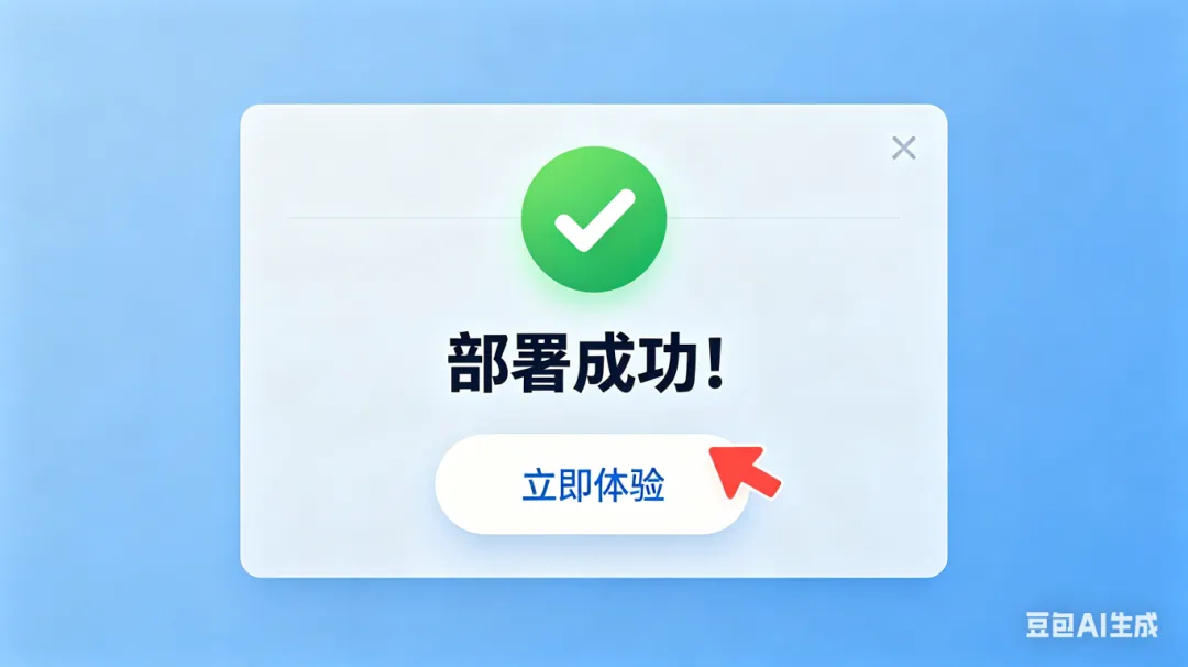 备注:耐心等1-3分钟,进度条走完,屏幕上会弹出「部署成功」的提示,就说明第一步搞定啦!