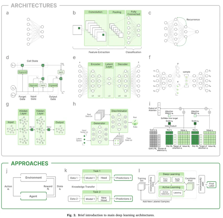 核心技术机制:核心创新为自注意力机制(Fig.2i),可同时处理输入数据的所有片段,自主为输入数据的不同部分分配差异化权重,精准捕捉数据内部的复杂关联与长程依赖关系。区别于循环神经网络(RNN)的串行处理模式(长程依赖捕捉能力受限)、卷积神经网络(CNN)的局部模式聚焦特性(序列类任务适配性差),Transformer 可一次性完成完整序列的全局分析,通用性与泛化能力极强。 药物化学领域核心价值:核心用于生物分子性质预测,包括化合物毒性预测等关键任务。其解决了传统药物研发的三大核心痛点:传统高通量筛选(HTS)成本高、耗时长,仅能覆盖极小范围的化学空间,仅能输出局部最优解;传统计算机建模计算成本极高,难以规模化应用;基于科研文献的研发方法,仅能开发作用机制常规的候选药物。而基于 Transformer 的 AI 技术,可实现从 “实体 - 性质” 直接预测、特定任务分子优化,到基于目标性质的从头分子生成的全流程覆盖。