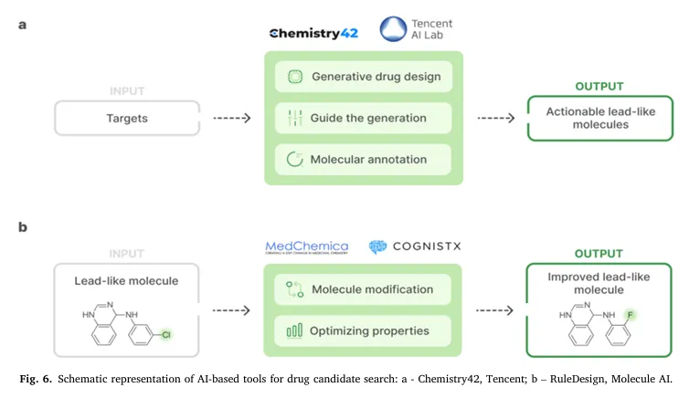 论文重点梳理了可直接服务于药物化学家日常工作、无需编程基础的商用 AI 平台,核心解决传统方法中 “具备目标生物活性的候选分子库筛选、可成药先导分子识别” 周期过长的行业痛点,相关平台可将原本数月的研发周期压缩至数天内完成。