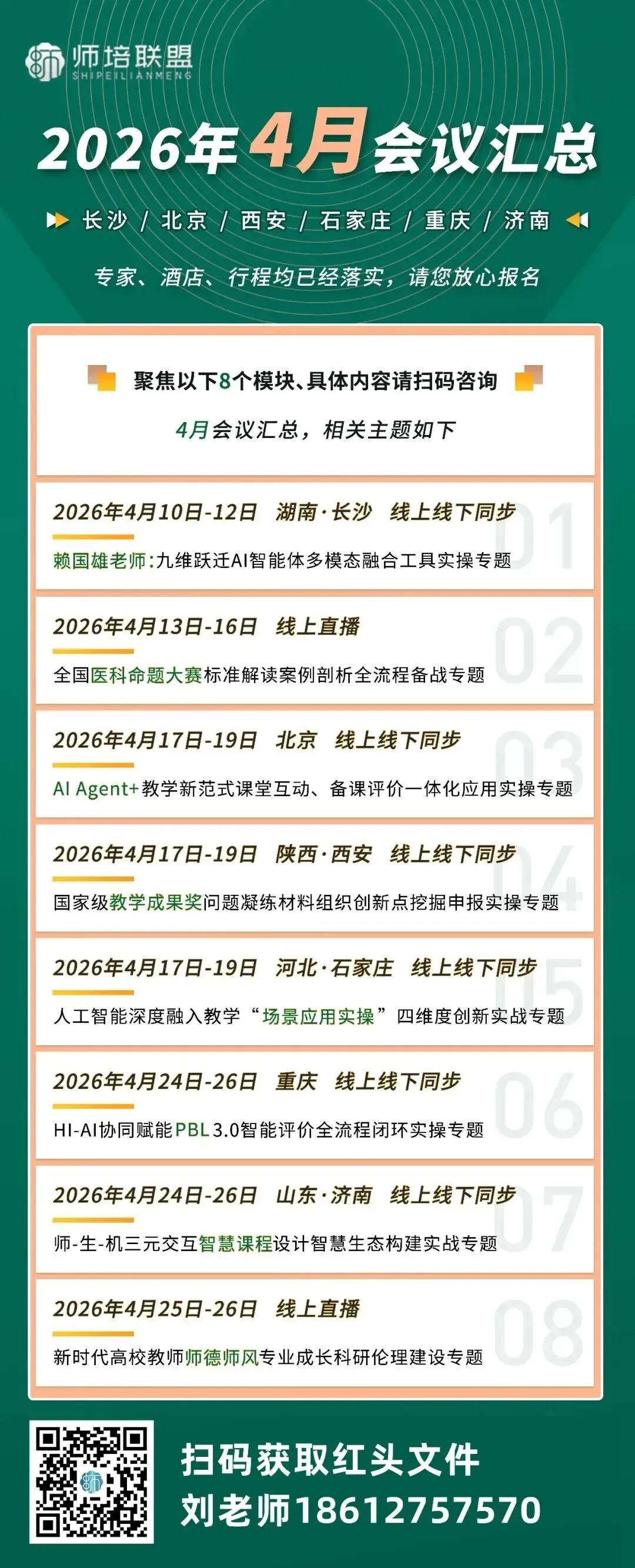 为响应国家关于深化“人工智能+教育”的战略部署,助力高校一线教师主动适应智能时代的教育变革,我院决定于2026年4月17日——19在石家庄线上线下同步召开“人工智能深度融入教学‘场景应用实操’四维度创新实战专题培训”。旨在通过四位一线专家的系统授课与实践指导,帮助教师破解AI教学应用中的实际问题,掌握AI赋能教学设计与学术研究的实战技能,探索智能时代教师发展的新路径,全面提升高校教师的数字化教学能力与学术创新能力。具体内容如下: