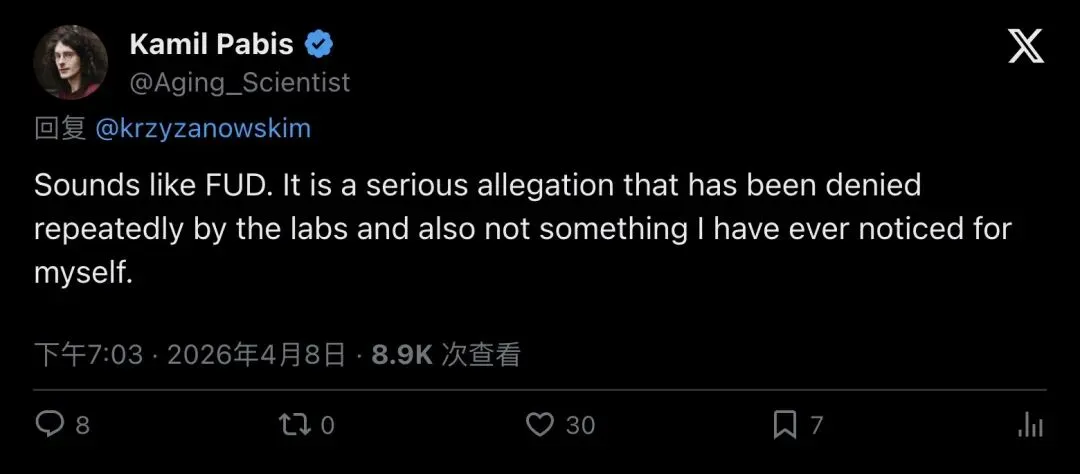 ▲ Kamil Pabis:这像FUD,实验室已多次否认