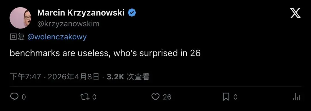 「benchmark就是没用的东西,2026年了谁还会吃惊?」