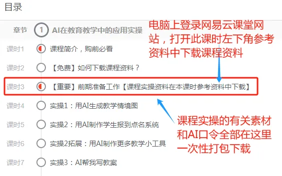 下载赠送的课题资料:请在电脑上登录网易云课堂,打开课时3、19,左下方【参考资料】中免费下载,请先全部下载再解压缩查看。手机APP上无法下载资料!