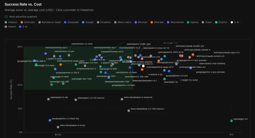 成本端,旗舰大模型的测试成本是轻量模型的 40 倍,成功率却未实现反超。