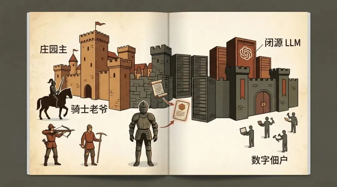 庄园主通过城堡控制土地,骑士通过重甲控制武力;今天的平台和模型公司控制算力、入口、接口和默认选项。