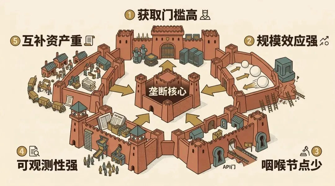 也就是说,技术本体只是第一层板甲,真正的护城河在板甲外面那一整座城堡。
