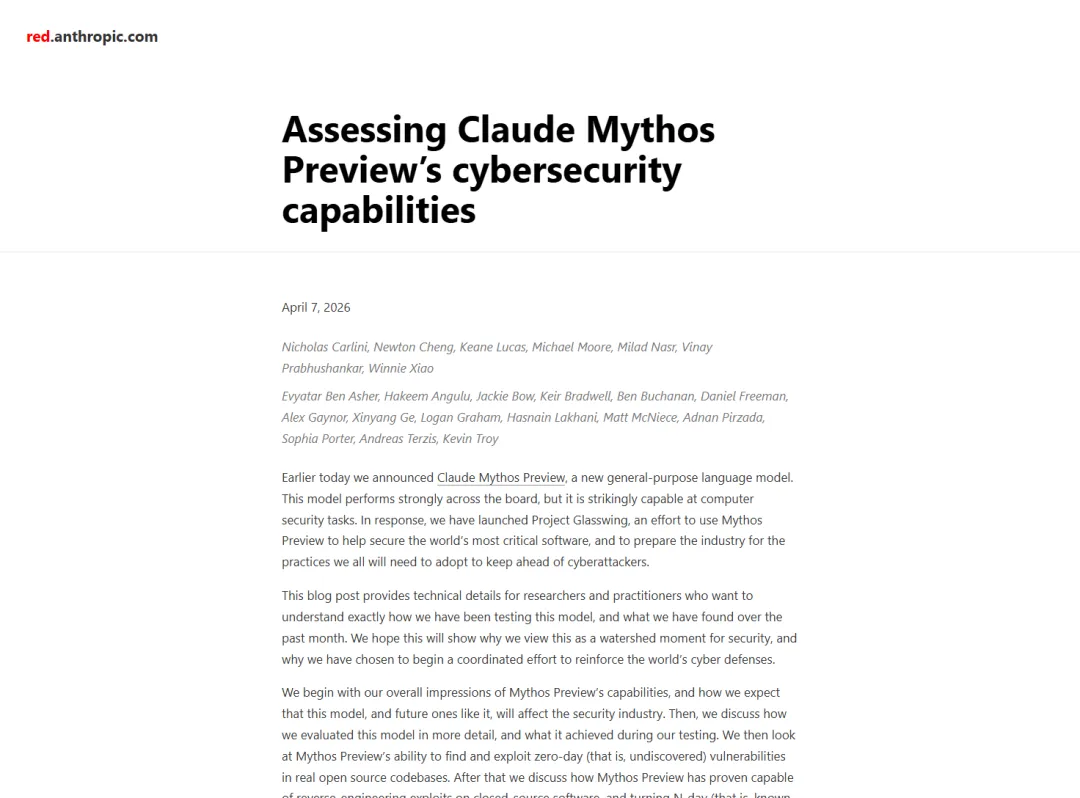 现在Mythos关着门不给用。但半年后呢?一年后呢?当这些能力变得人人可用的时候,世界会变成什么样?