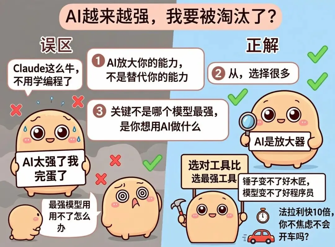 他们在聊什么?"AI越来越强了,我要被淘汰了。""Claude这么牛,是不是不用学编程了。""最强模型用不了,普通人怎么办。"