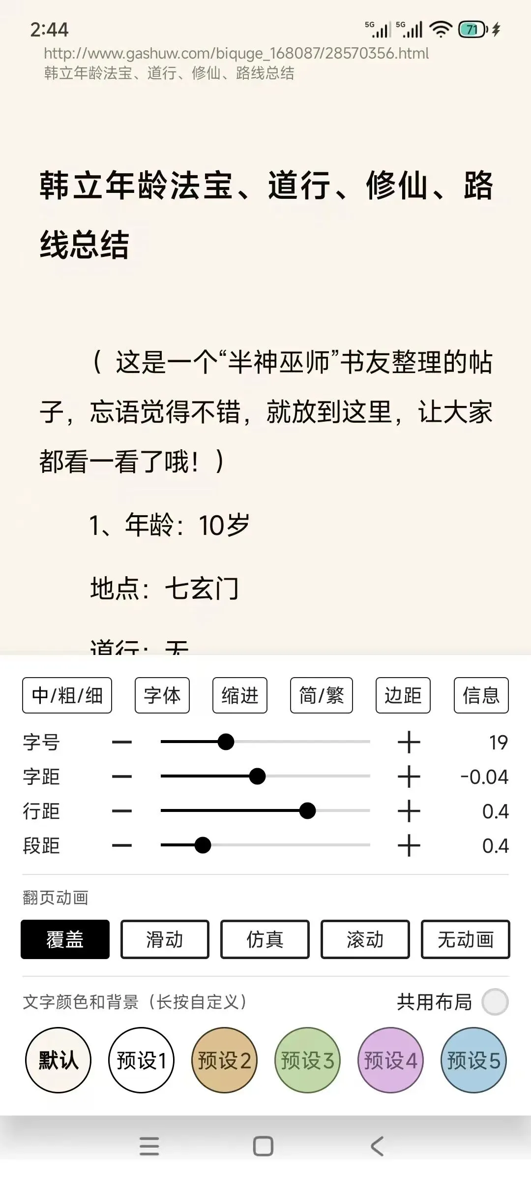 沉浸式阅读界面:支持背景色、字体、行间距、页边距等18项自定义调节,连夜间模式都有三档可调亮度,护眼党狂喜。