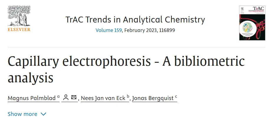 文献计量分析结果表明,对一个跨越数十年、涵盖数万篇文献的科学领域进行系统研究是可行的。据我们所知,本研究是首个针对毛细管电泳领域开展的全面文献计量与合著网络分析。合著网络呈现出一定的地理合作特征,同时也显示出广泛的国际合作,尤其是在欧洲地区。当前仍有一些活跃研究者在 1980 年之前便已发表重要成果,个别甚至可追溯至 20 世纪 60 年代。然而,现代毛细管电泳通常被认为始于 1981 年 Jorgenson 和 Lukacs 在毛细管区带电泳方面的开创性工作,因此本研究至少覆盖了该领域的现代发展阶段。