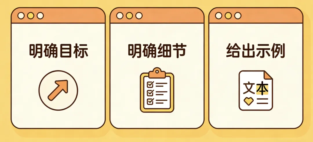 直接告诉大模型“你要生成什么”,比如“写文案”、“画图像”、“整理会议纪要”,不要模糊不清。