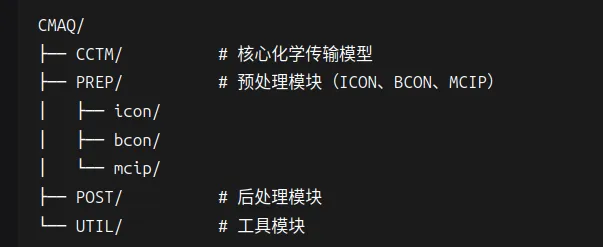 cd ~/WRFunzipunzip CMAQ-master.zipmv CMAQ-master ~/WRFHOME/CMAQ2.2 目录结构说明