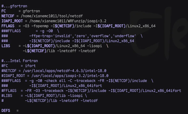 原因: MCIP的 Makefile默认使用Intel编译器 解决: 手动修改Makefile,注释掉ifort部分,启用gfortran部分