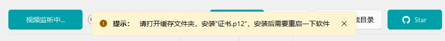 如果证书没自动出来,手动打开 mitmdump.exe再试一次重启软件,看到“开启成功”提示,完事