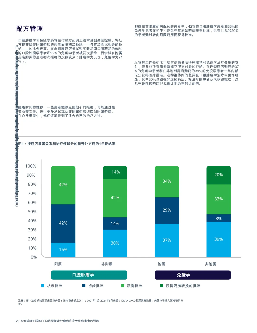 PBM(药品福利管理)、垂直整合、关联药房、初次拒绝率、审批延误、肿瘤药准入、自身免疫病用药、市场准入策略