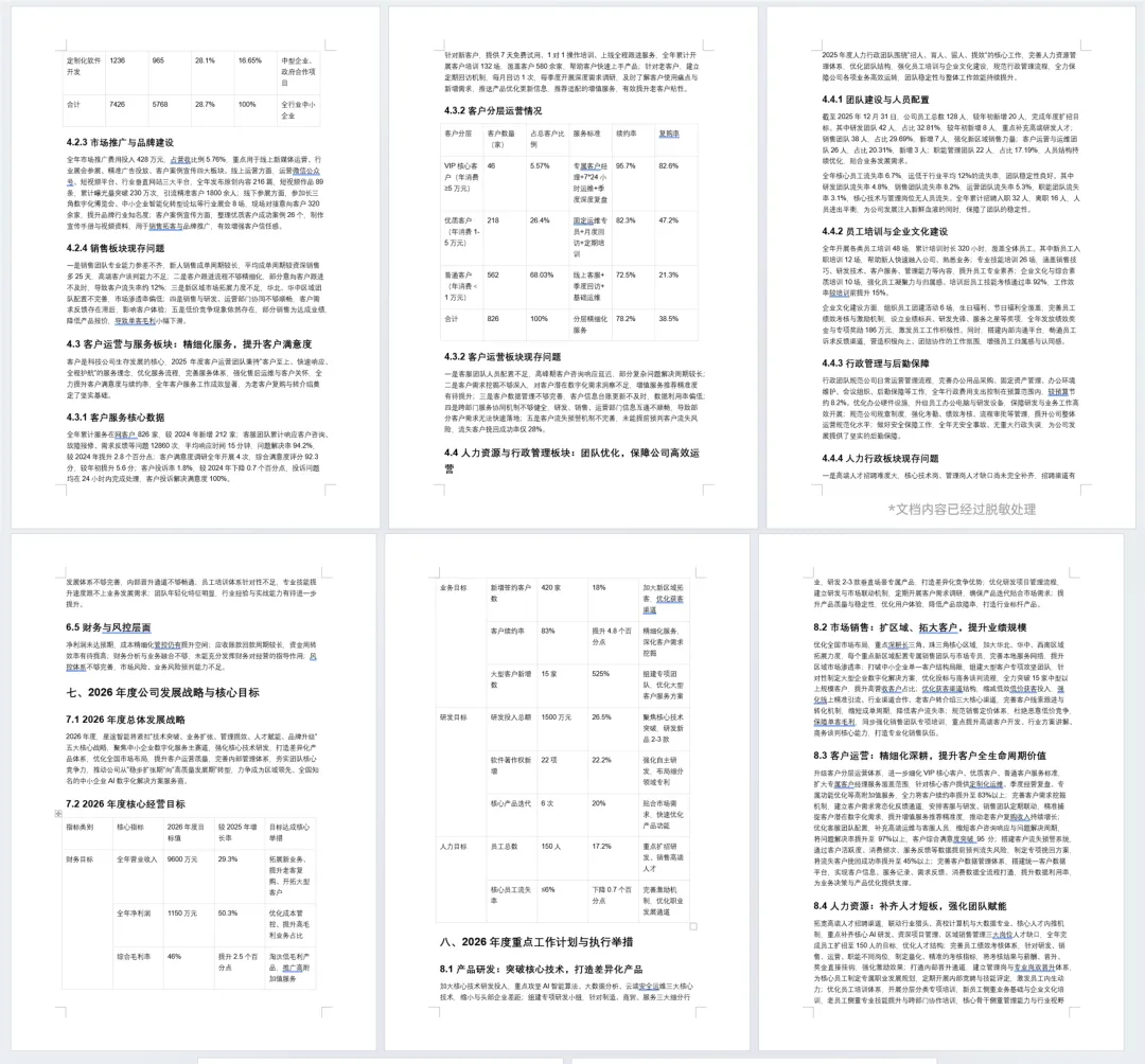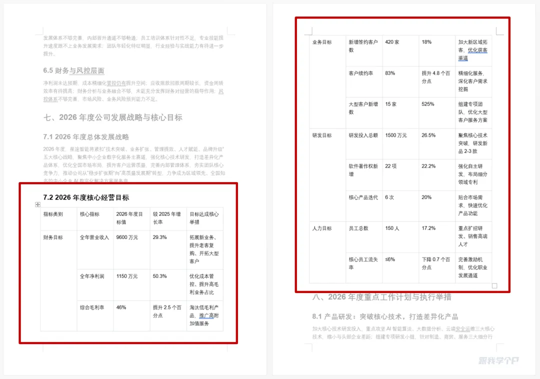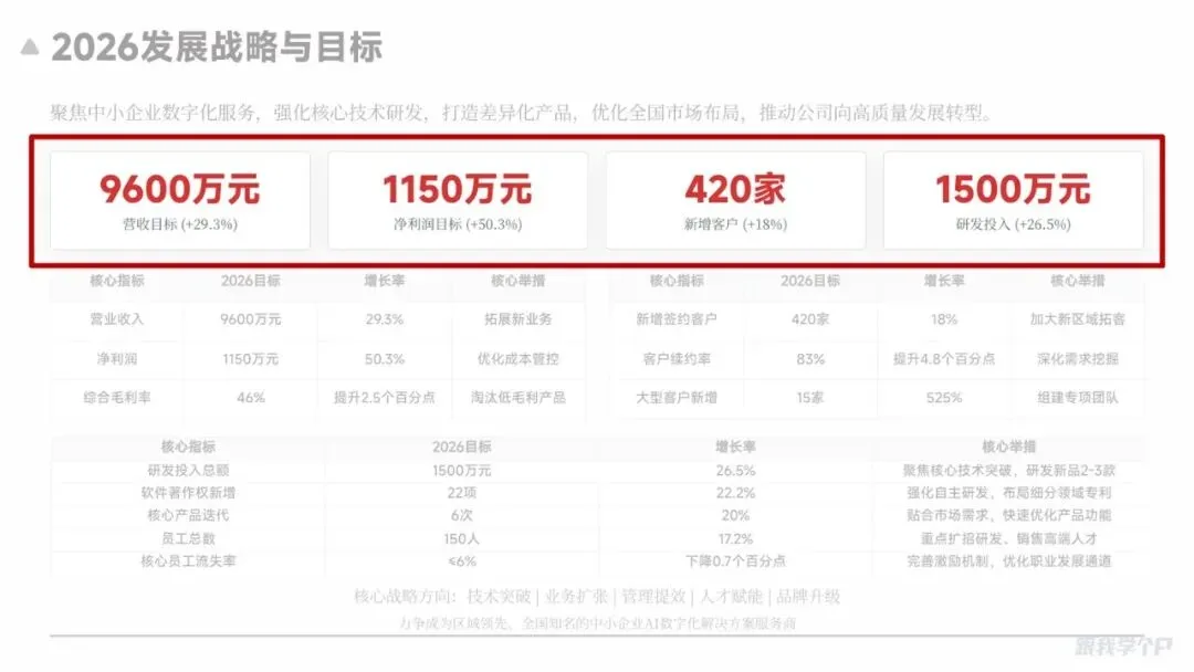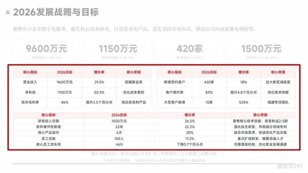 但经过爱图表处理后,它自动识别出哪些是核心数据——像“营收目标”、“净利润目标”、“研发投入总额”这些关键指标直接大字号展示: