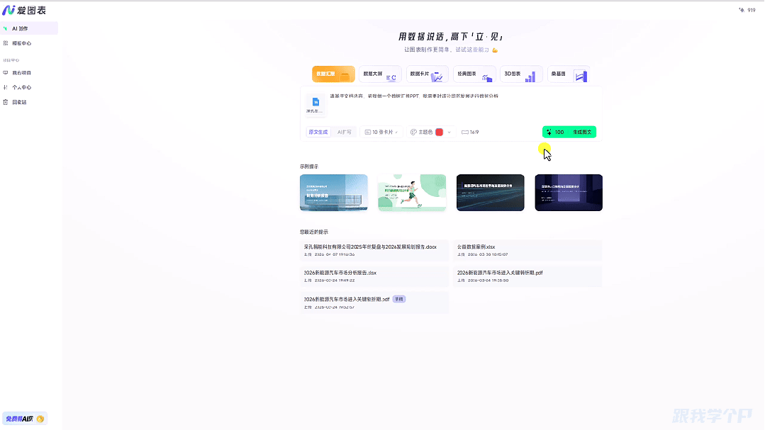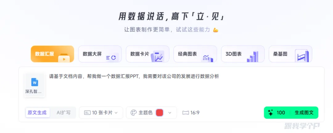 先选择【数据汇报】,上传文件,并输入汇报要求: