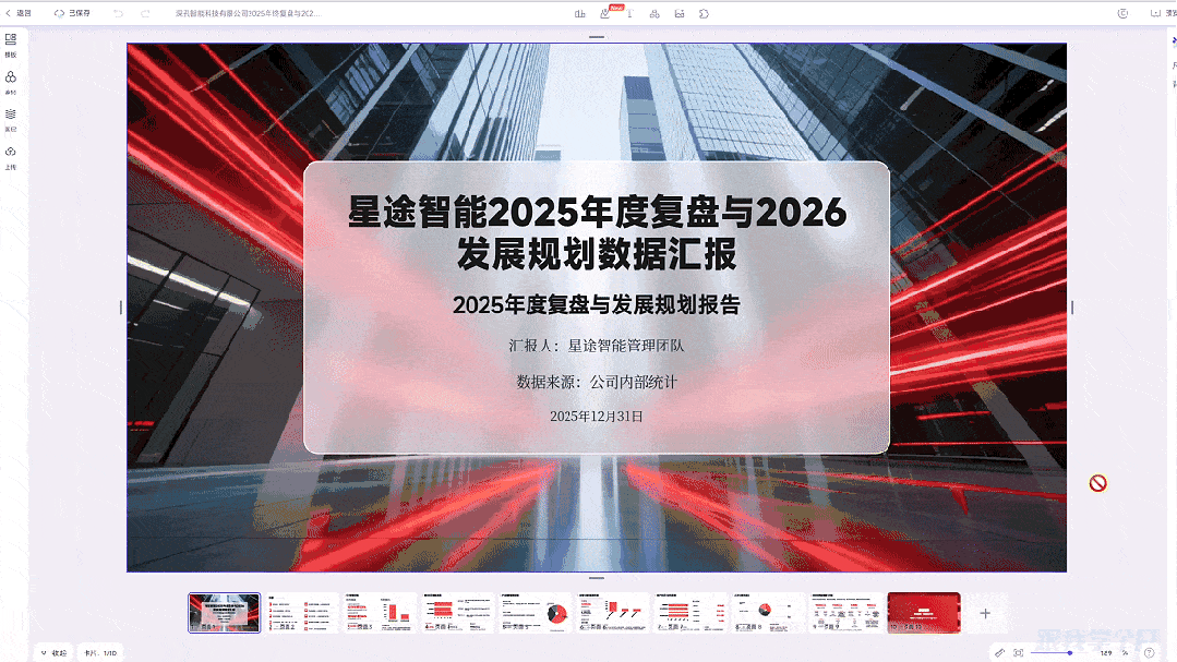 我们直接上压力,让他将这份文档做成一个数据报告PPT,让我们来看看他的效果如何?