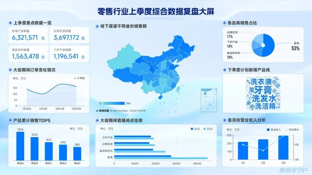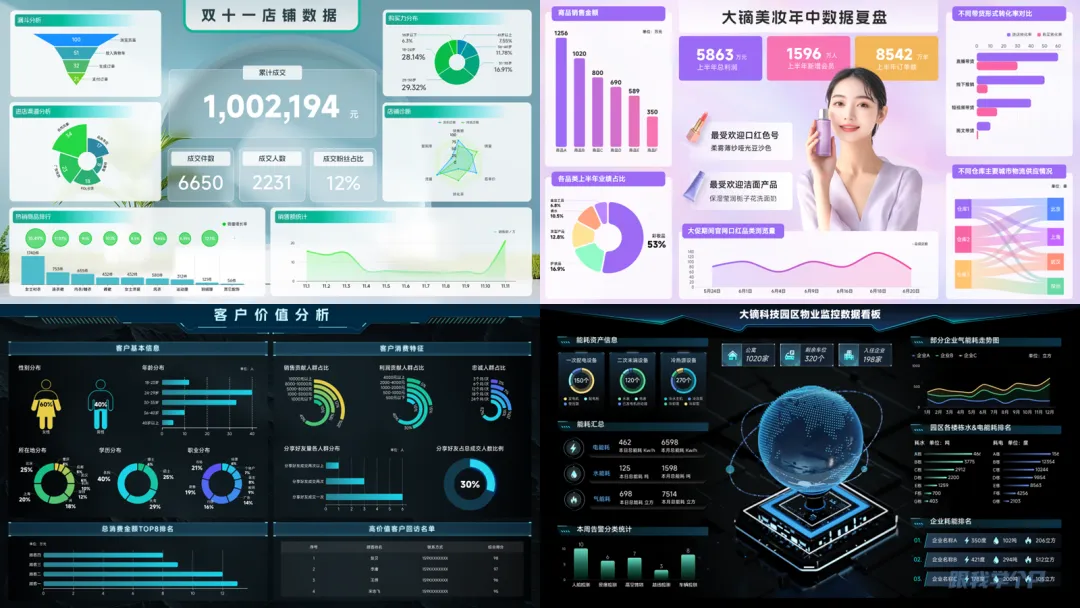 有时候季度汇报,光有一张图表不够,老板要的是那种科技感拉满的“数据看板”。