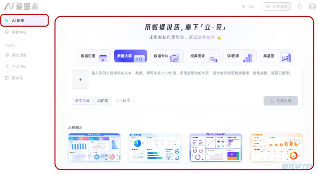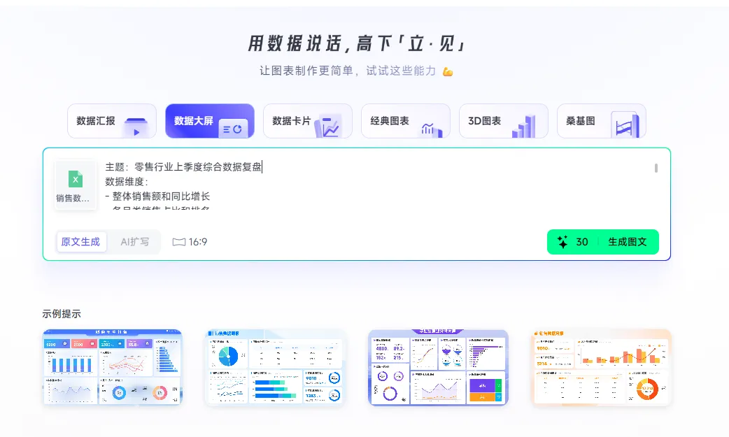 在【AI创作】-【数据大屏】功能: