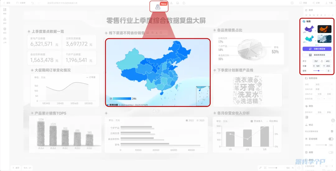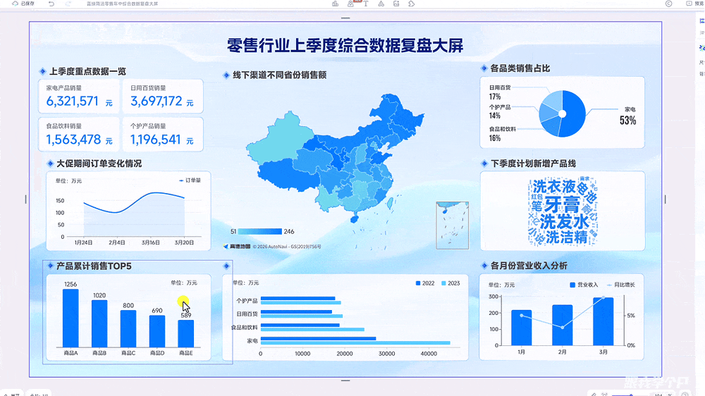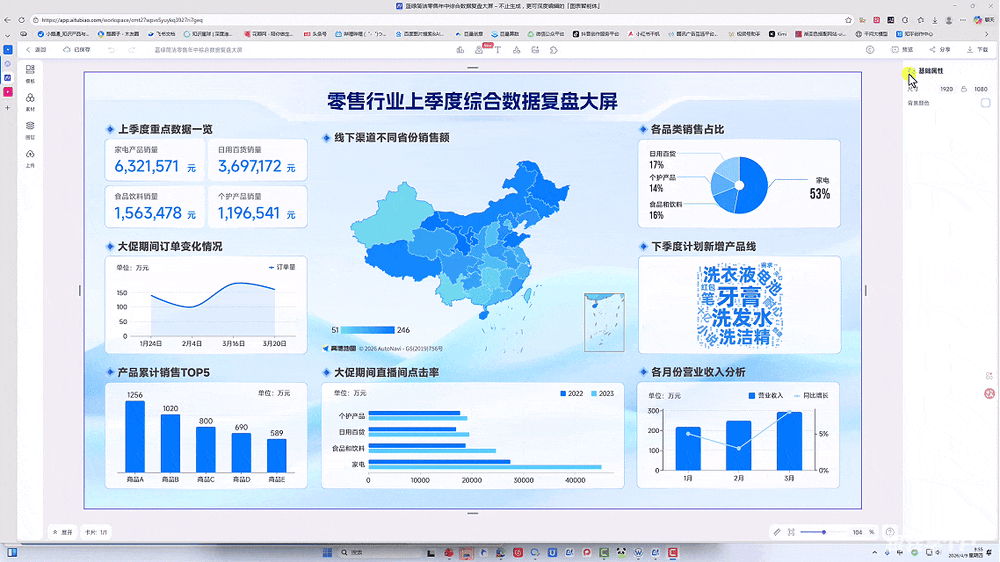 以前做这种大屏,要么花大价钱找外包,要么自己在PPT里慢慢拼素材……费时费力不说,做出来还不一定满意。