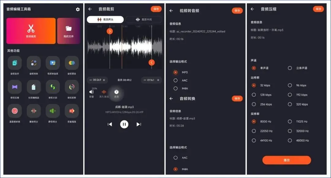 音频编辑工具箱是一个完全免费的音频剪辑软件、音频转换软件、音频处理软件;软件支持安卓。
