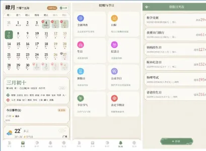 它完全免费,不需要注册登录,小清新风格,整个软件古风诗意,颜值特别高;它功能全面,支持的功能包括:二十四节气详细介绍、七十二候详细介绍、经典日历、传统日历万年历、日程规划、日程提醒、每天日程管理、倒数日、纪念日、生日、节假日、天气预报。