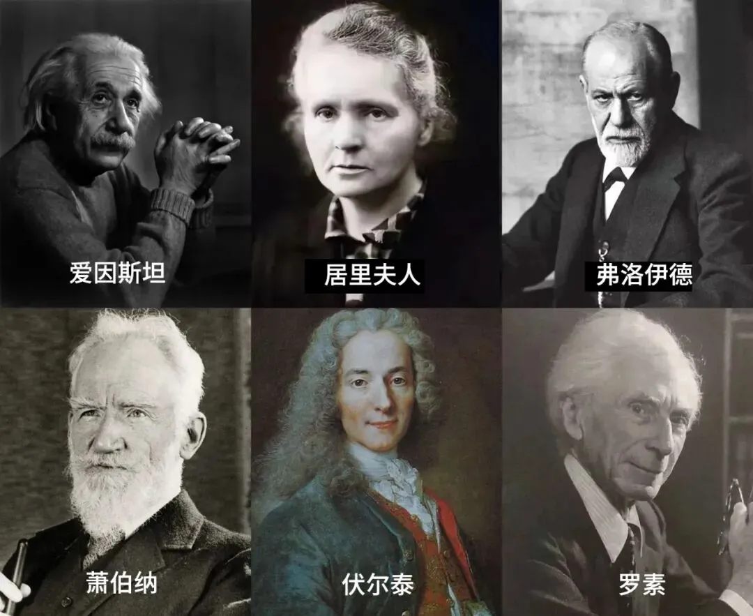 爱因斯坦、伏尔泰、居里夫人、萧伯纳、弗洛伊德、罗素......